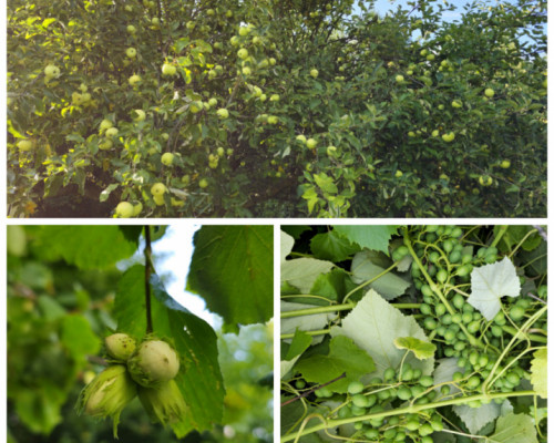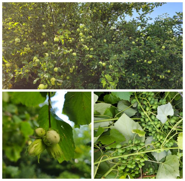Mam tu świetnie owocujące jabłonie, białe winogrono, słodkie mirabelki, maliny i około 20 drzewek orzecha laskowego. W ubiegłym roku obrodziły wyjątkowo pięknie, co zresztą widać na zdjęciach!