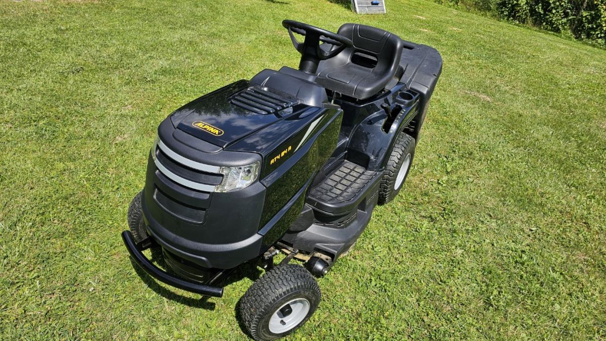 - Traktorek-kosiarka Alpina AT 4 84 A (wartość ok. 8000 zł!) – kupiony 4 lata temu, w pełni sprawny i serwisowany. Koszenie tak dużej działki to z nim czysty relaks.
