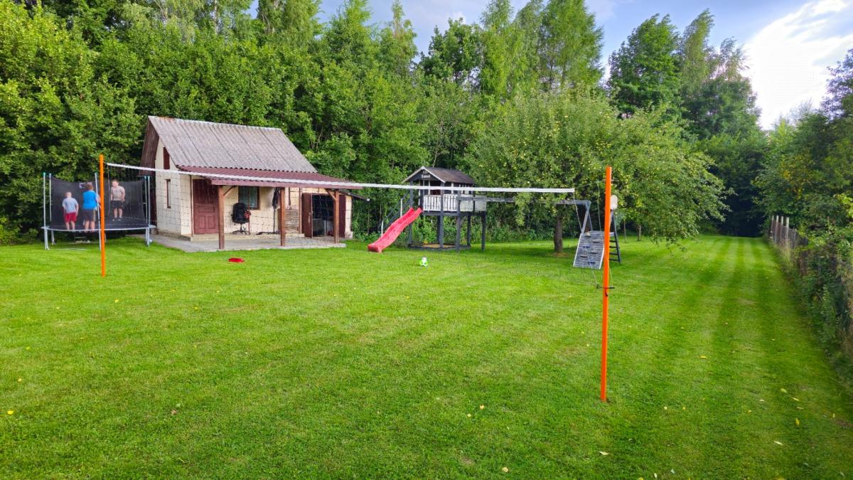 Własne boisko do siatkówki. Co ważne: słupki można łatwo zdemontować, a linie zwinąć, więc nie przeszkadzają w koszeniu trawy.